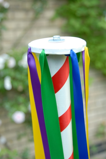 Younger kids especially love capering madly round the maypole. This one is easy to make and is sturdy enough for eight children to dance around.