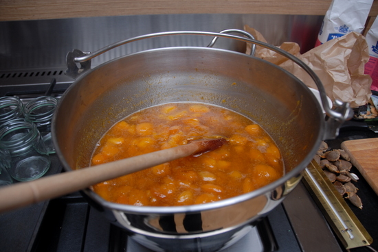 Wash the apricots. Cut them into quarters and remove the stones. Place in a preserving pan with the lemon juice and water. Gently bring to the boil, then reduce the heat and simmer for about 15 mins or until the apricots start to fall apart. Mash them a bit with a spoon. Add the sugar and stir gently over a low heat until the sugar has dissolved. Bring to the boil and boil rapidly until a set is obtained. (The time this takes can vary greatly, start testing after about 10 mins, but it may take much longer.) Stir regularly to stop it burning. Pour into sterile jars and place lids on while still warm.