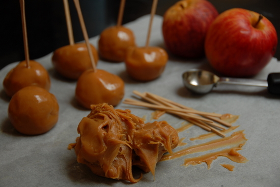 Sometimes a whole toffee apple can be too much. These bite-sized versions are easy for children to mould themselves, and go down very well with trick and treaters at Hallowe’en.