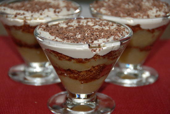 Years ago when I first came across this Danish pudding, it was the name that seduced me to make it – and I wasn’t disappointed by the results. It’s now a family favourite: crunchy layers of toasted breadcrumbs and apple, topped with a veil of cream sprinkled with chocolate…