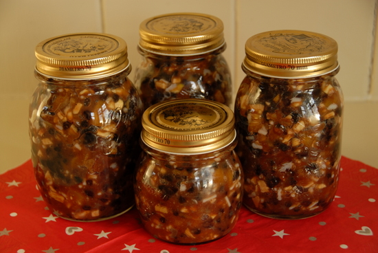 Chop apricots and ginger. Place in a large mixing bowl. Peel and core the apples and chop finely. Place in the bowl together with the rest of the ingredients. Stir well. Cover the bowl and leave overnight. Give it one last stir before you bottle it in sterilised jars and keep for a week before using, but it won’t do any harm if you use it straight away.