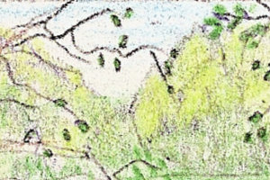 And so, thanks to the ingenuity of Grandfather Atlas, Sally and Tom had the desert, the ocean, the forest, and the mountains on their Doorstep – could travel to the four corners of the earth whenever they pleased, more or less, and still be home for supper. And thanks to their parents, they had the freedom to do just that – for Mr and Mrs Atlas, despite their rules against leaving Doors standing open and bringing mountain goats home as pets, were strong believers in the power of travel to broaden the mind, and had fond memories of the wonderful honeymoon that Four Corner House had allowed them to take, many years ago. Nor did they have to worry that the children would get lost and be unable to ask for help, for Grandfather Atlas had left another excellent invention behind. This was Marcopolon, the universal language which could be understood by people of any time and place – even, it was said, by certain extremely clever animals. It was not an easy language to master, but it was extremely useful, for a person fluent in Marcopolon could talk to anyone, and understand what they said in return. Sally and Tom never left home without their copy of Marcopolon Words and Phrases, which Grandfather Atlas had written himself, in a thick notebook that was now coming apart from all the use it had seen. It was the only Marcopolon phrasebook in existence, and held together by elastic bands, with If found please return to Four Corner House written on the front cover, in the most appealing script that the children could devise… Next week: Sally and Tommy join the crew of the Hand of Friendship, and find that all is not well on the high seas… If you would like to leave comments about what you have read please do so through the blog - 2nd March 2008 entitled 'Four Corner House'. © 2008 Text Andrew Hewitt © 2008 Illustrations Quitterie de Castelbajac |