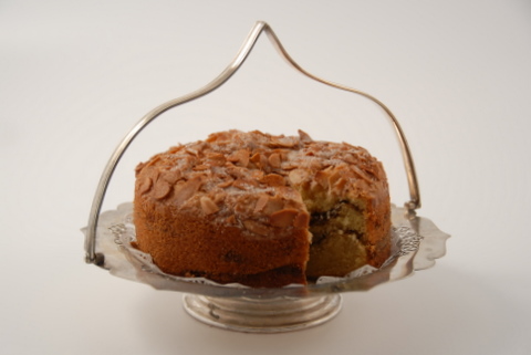 50g dark muscovado sugar 50g ground almonds 150g golden caster sugar 175g butter or margarine 3 eggs 200g self-raising flour 1 tsp baking powder For the topping: 50g flaked almonds ½ tsp ground cinnamon 1 tbsp caster sugar Preheat the oven to 180 degrees C, Gas Mark 4. Line a 20cm loose base or spring-form cake tin. In a small bowl, mix together the coffee powder, muscovado sugar and ground almonds. Set to one side. Put the sugar and butter or margarine in a mixing bowl and beat together until fluffy. Add the eggs one at a time, beating well after each addition, then mix in the flour and baking powder. Spoon one-third of the cake mixture into the baking tin and scatter with half the coffee mixture. Gently spread with half the remaining cake mixture and scatter with the remaining coffee mixture. Finally, spread with the remaining cake mixture. For the topping: toss the flaked almonds and cinnamon with the caster sugar and scatter over the surface of the cake. Bake in the oven for 35 to 40 mins until just firm to the touch. Leave to cool in the tin before transferring to a wire rack to cool completely. Delicious at any afternoon tea. |