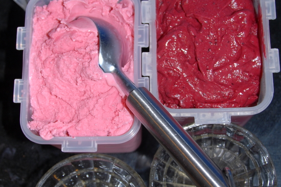 Or 400ml redcurrant coulis 200ml plain yogurt 200ml single cream Mix coulis, yogurt and cream thoroughly together. Pour mixture into a plastic box with a lid and freeze until ice-cream is solid round the sides but still very soft and runny in the middle. Scrape it off the sides and beat thoroughly until smooth and creamy. Pour back into the plastic container and freeze until firm. Soften for 10 to 15 mins in the refrigerator before serving. |